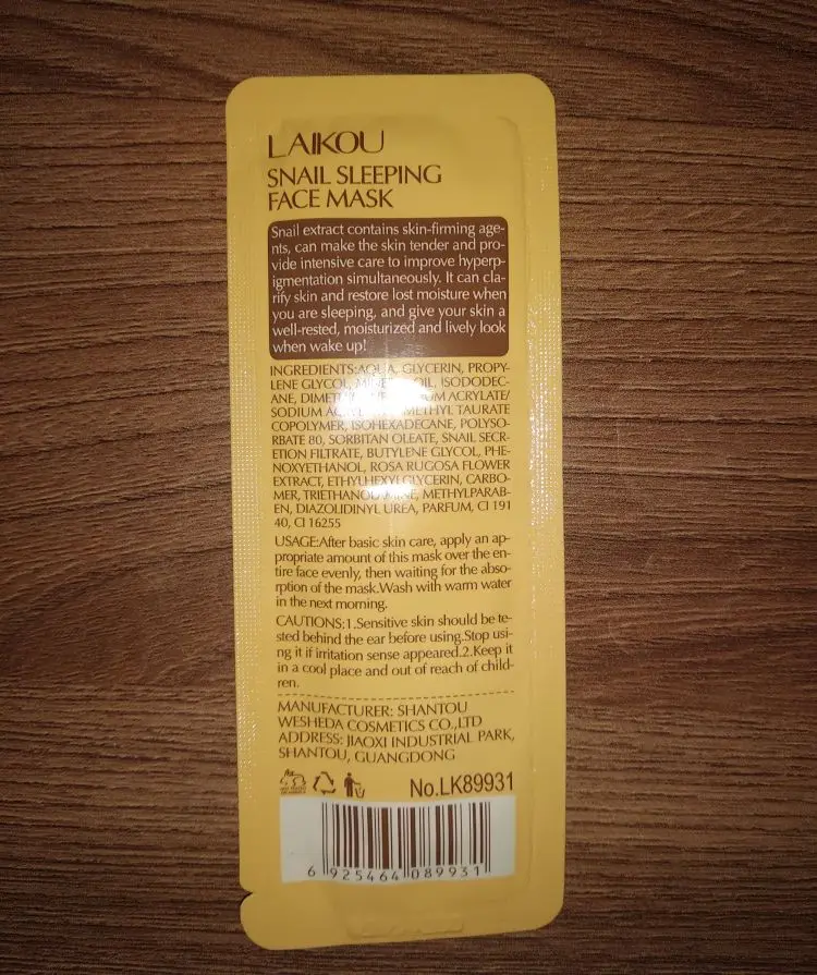 Маска для лица со спящей улиткой:Он может осветить кожу и восстановить потерю влаги во время сна, а также придать коже приятный, увлажненный и живой вид при пробуждении! Срок годности: 3 года