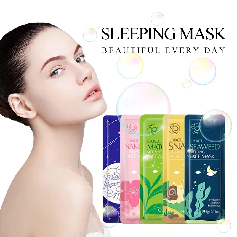 5 шт. Sakura Улитка морские водоросли маска для сна крем против старения для удаления морщин ночной ремонт Отбеливающая увлажняющая маска для ухода за лицомПодходит:Для всех типов кожи матча Спящая маска для лица: увлажнение и осветление.
