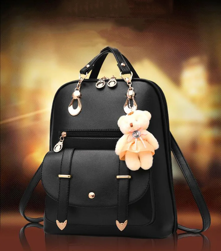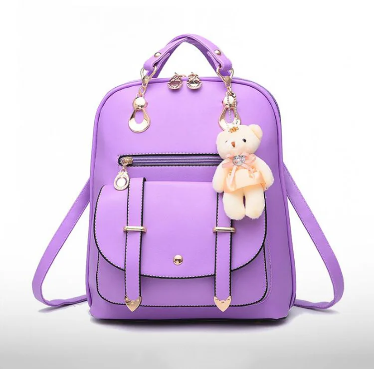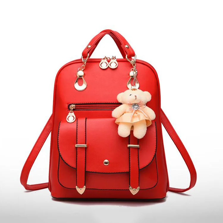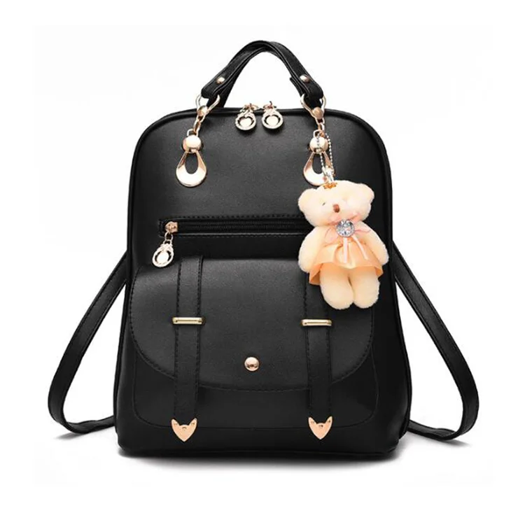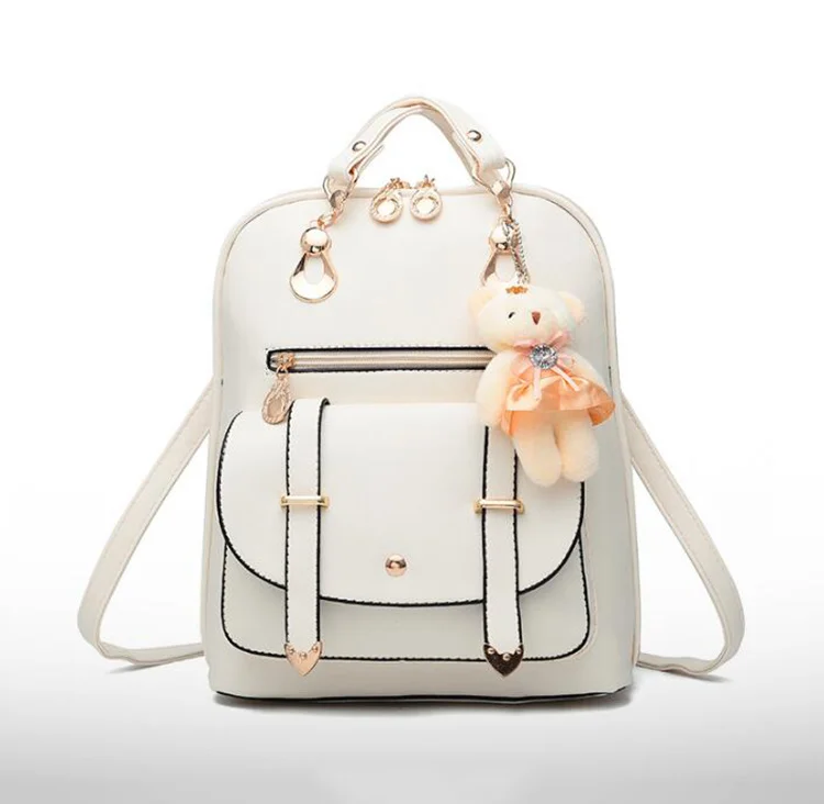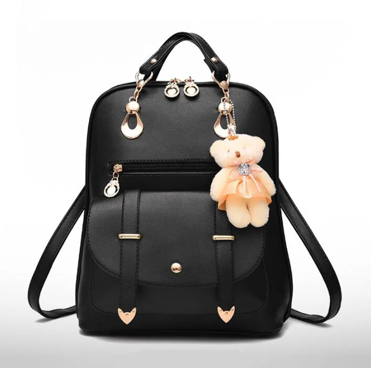Рюкзак женский в стиле преппи, ранец из искусственной кожи с медведем и игрушками для девочек-подростков, дорожная сумка на плечо