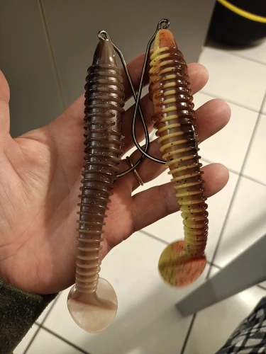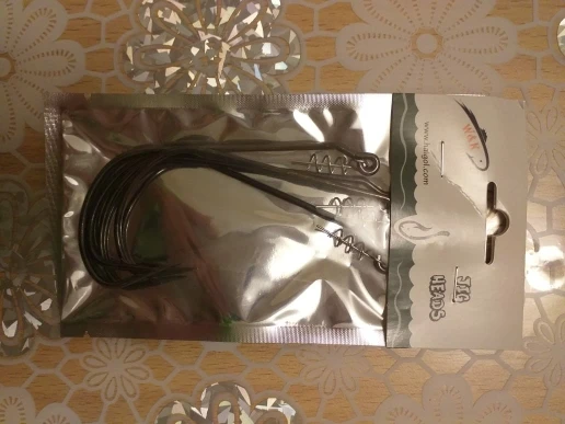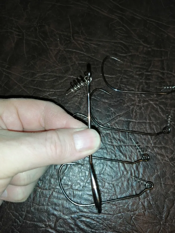 Крючки - Бомба! Качество стали отличное. Упругие, заточка отличная. Жало имеет незначительное смещение вбок. Давно искал подобный размер. Теперь можно оснастить 20-и см. виброхвост в незацепляющем варианте, для ловли щуки в траве. В комплекте пружинки для фиксации приманки. Отправили быстро, всё пришло в одной посылке с другими заказами.