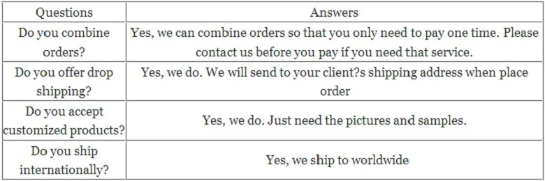 1. Пожалуйста, сначала свяжитесь с нами, если вы хотите разместить большой заказ. Также мы получим большую скидку от курьерской компании, если количество вашего заказа большое.2. Если вы хотите смешать заказ, пожалуйста, свяжитесь с нами, прежде чем вы закончите оплату, так как мы можем дать вам скидку.