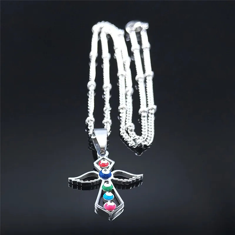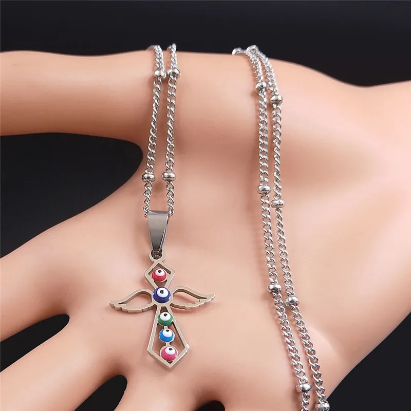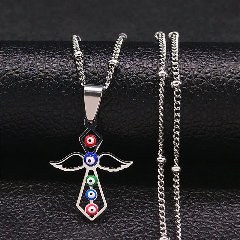 Ожерелье из нержавеющей стали с цветными индейцами и перекрестными крылышками, женское серебряное ожерелье, ювелирные украшения oeil turc