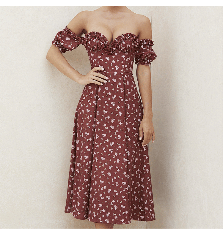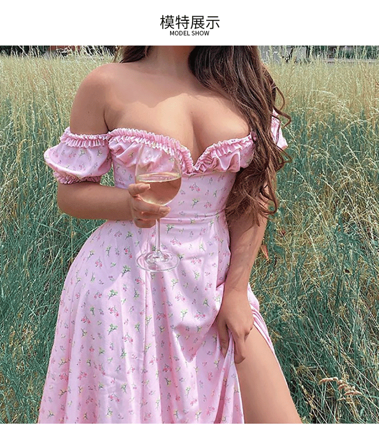 Пикантные летние платья для женщин, элегантное платье миди с цветочным принтом и оборками, модные милые длинные платья без бретелек с Боковым Разрезом
