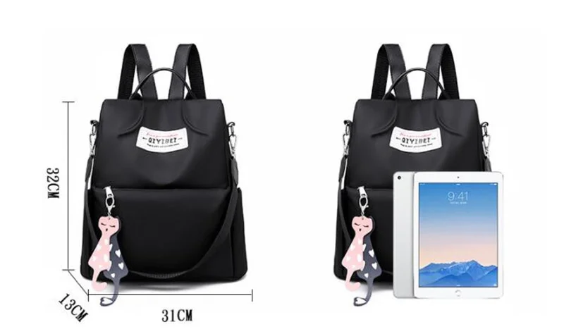 Рюкзак из ткани Оксфорд для женщин, вместительный дорожный большой рюкзак на молнии с защитой от кражи, милый Многофункциональный ранец с подвеской