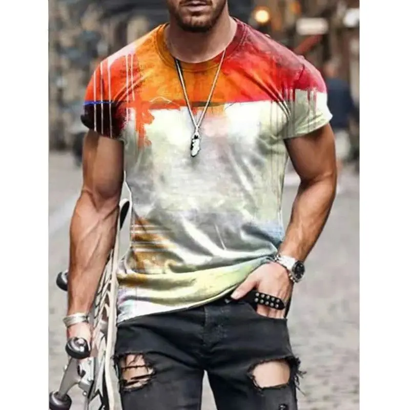 Мужская футболка с 3D-принтом перьев, свободная быстросохнущая футболка большого размера в европейском и американском стиле, лето 2021