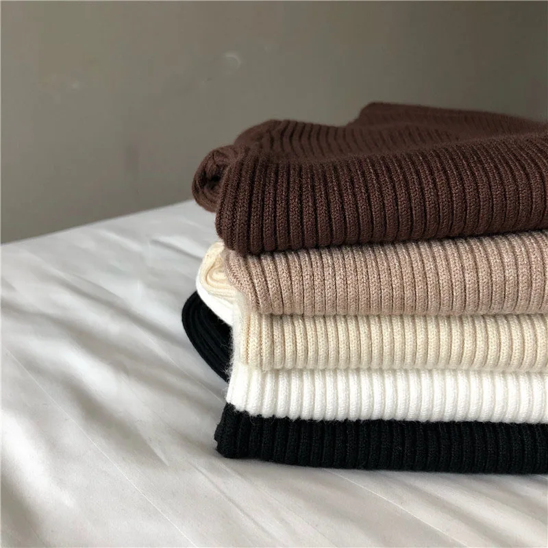 Женский свитер с длинным рукавом, плотный вязаный пуловер в рубчик, Облегающий мягкий теплый джемпер с высоким воротником, Осень-зима 2021