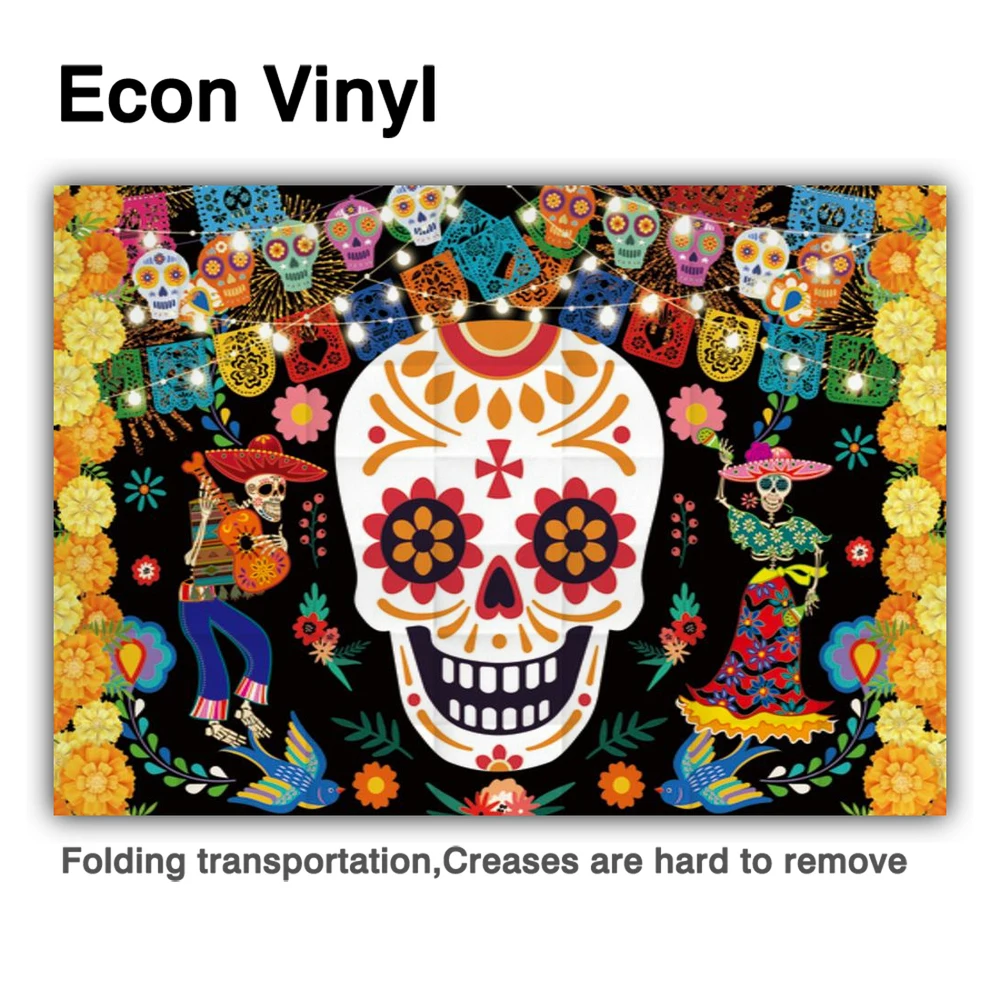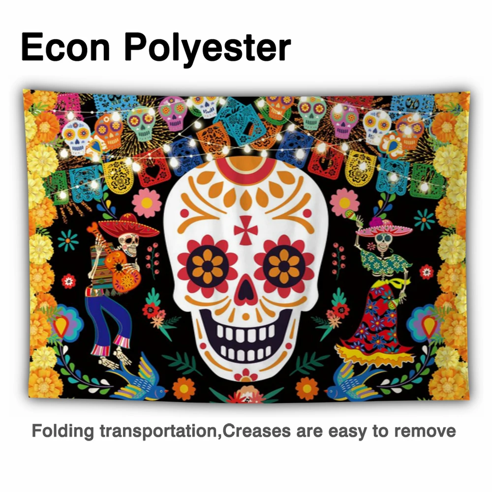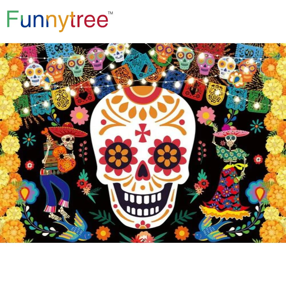 Фон Funnytree для фотографирования с изображением Дня мертвых мексиканских флагов, черепа, бархатцев