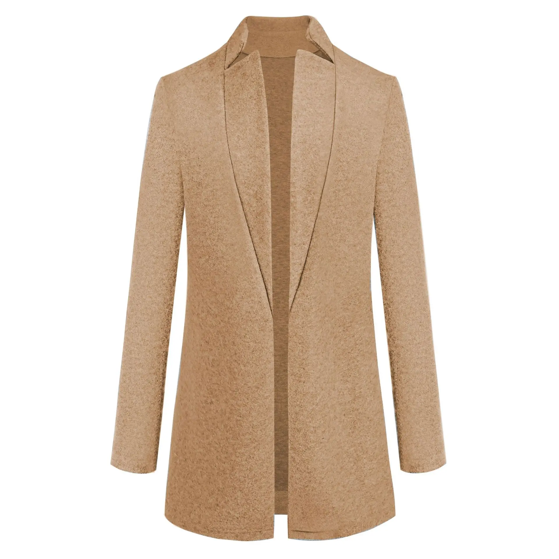 Длинные женские куртки с открытым стежком, модное шерстяное пальто ...