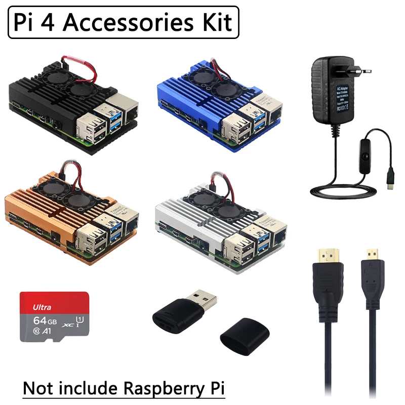 Комплект аксессуаров для Raspberry Pi 4B, включает Алюминиевый Чехол (с двойным вентилятором), блок питания, кабель, совместимый с HDMI, дополнительно 32 ГБ/64 Гб/128 ГБ TF карта.Чехол в наличии 4 цвета: черный/синий/золотистый/серебристый.И штепсельная Вилка питания EU/US/UK/AU на выбор.Пожалуйста, оставьте сообщение в примечании для заказа.В противном случае мы отправим чехол A1 по умолчанию.
