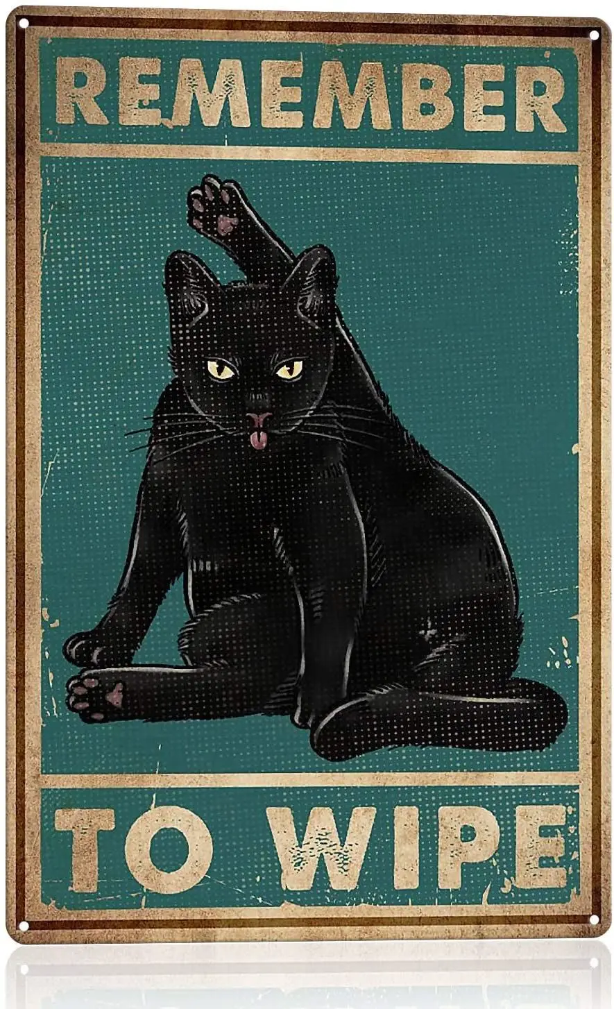 Постер с изображением черного кота, Забавный постер для ванной, с о...