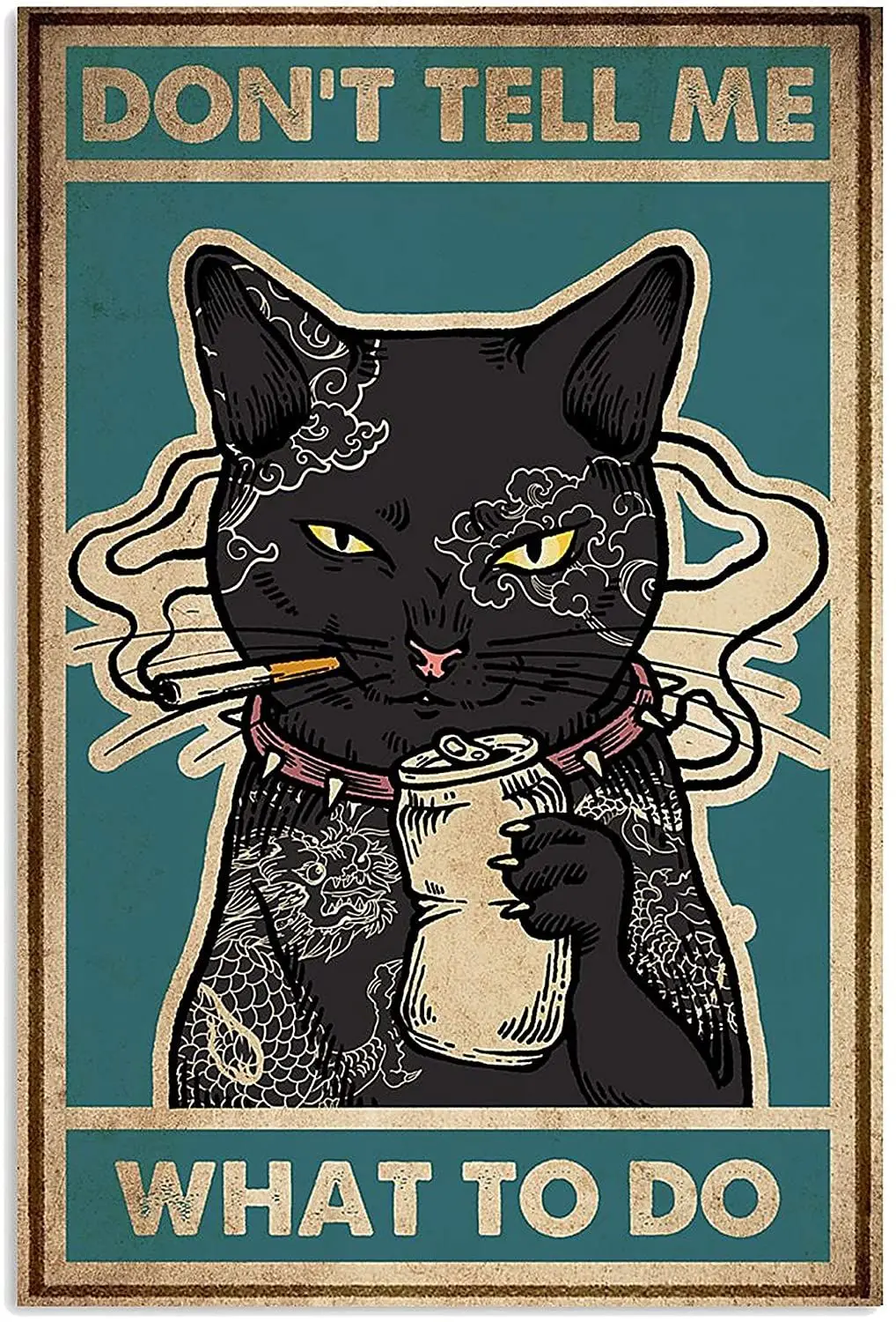 Плакат с черной кошкой, винтажная Веселая салфетка для ванной комнаты, кухонная живопись, настенное художественное украшение, кавайный декор комнаты, Холщовый плакат