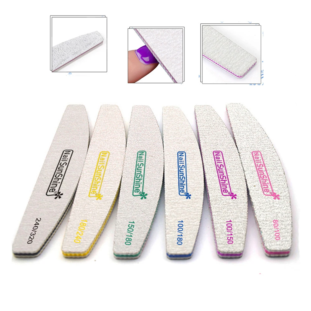 Профессиональная пилка для ногтей 80-320 полумесяц двухстороннее шлифование наждачной бумагой шлифовка полировка Искусство Маникюр Уход Инструменты Оборудование для ногтей