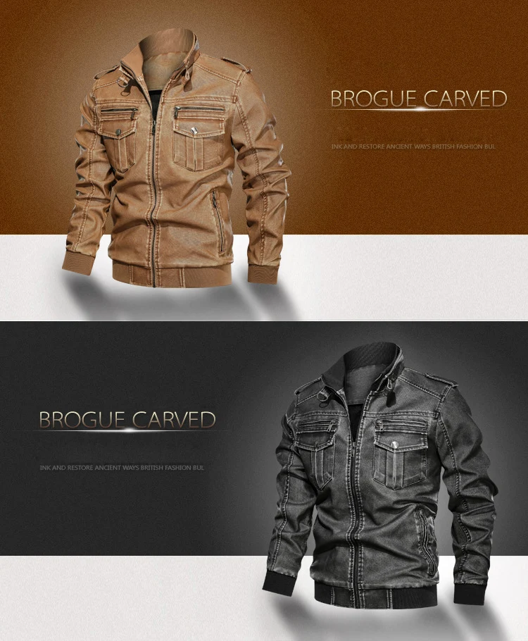 Мужская зимняя куртка из искусственной кожи, осенняя винтажная мото...