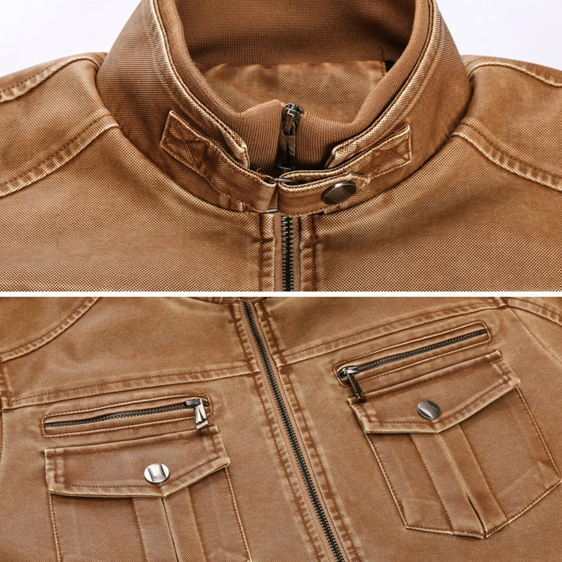 Мужская кожаная куртка-карго, мотоциклетная куртка цвета хаки, курт...