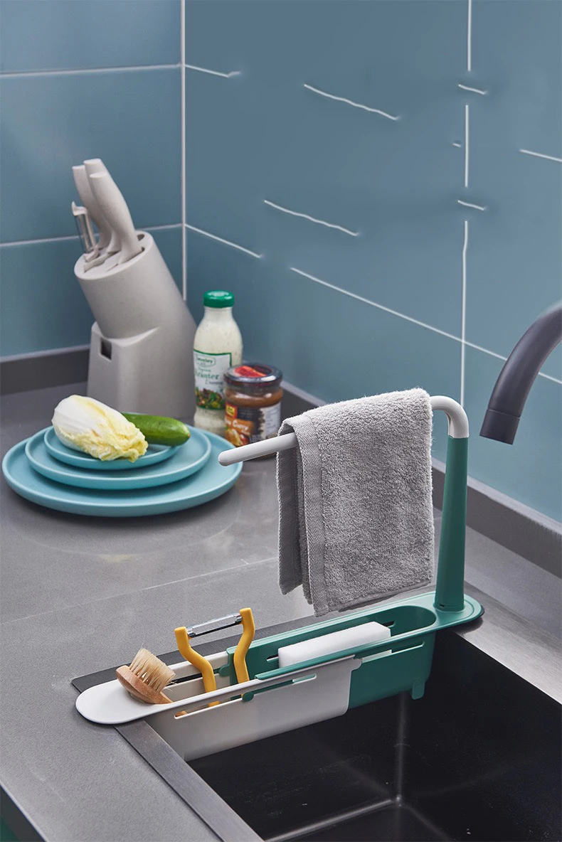 Телескопическая полка для раковины, держатель губки, сливная стойка...