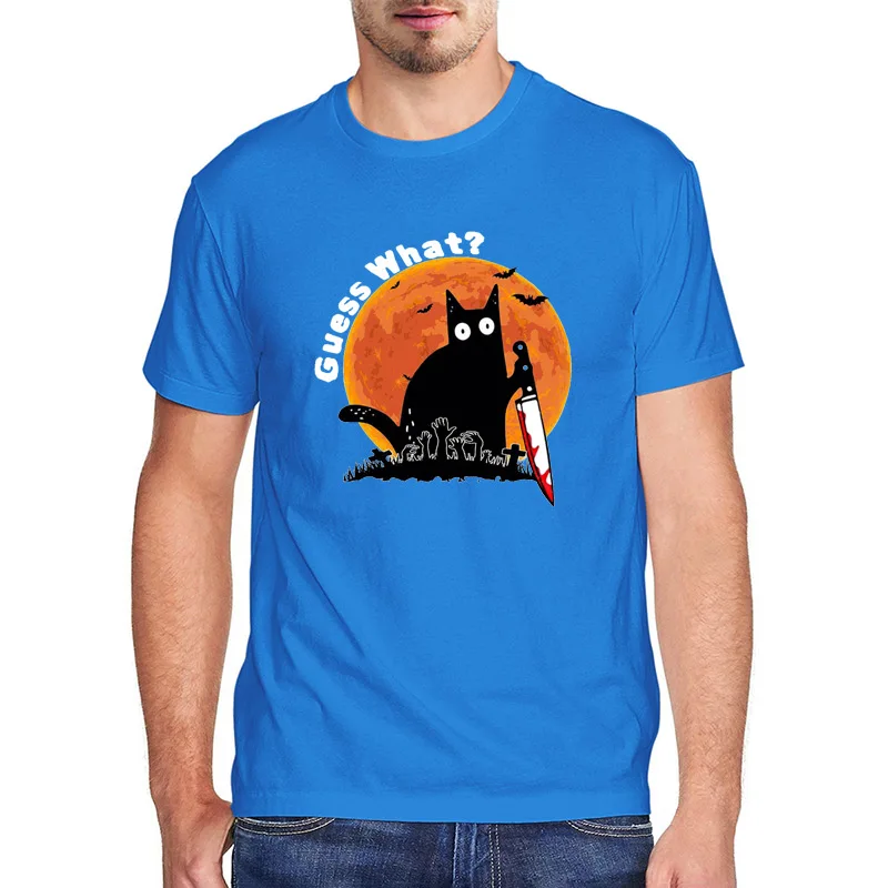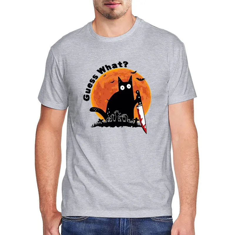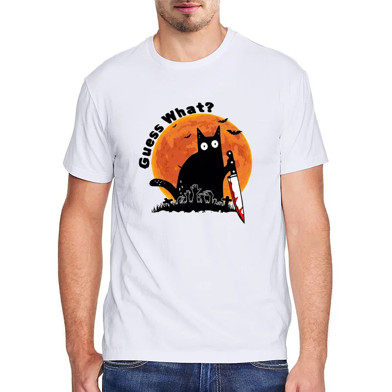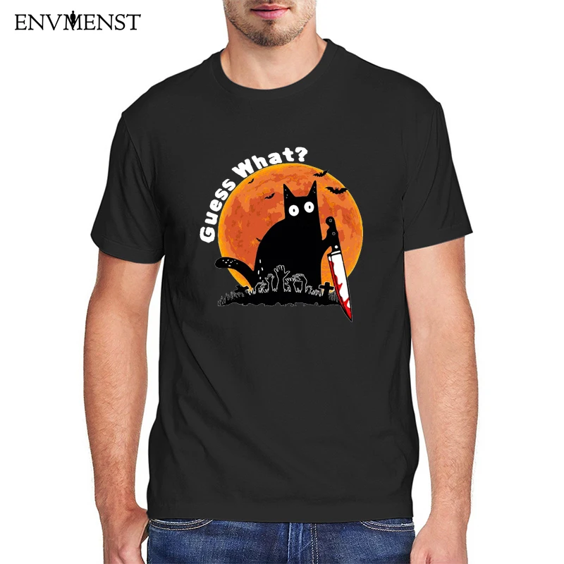 Футболка Guess What Cat, мужская одежда, футболка Harajuku, убийственная черная кошка с графическим ножом, футболка с коротким рукавом, мужские винтажные топы