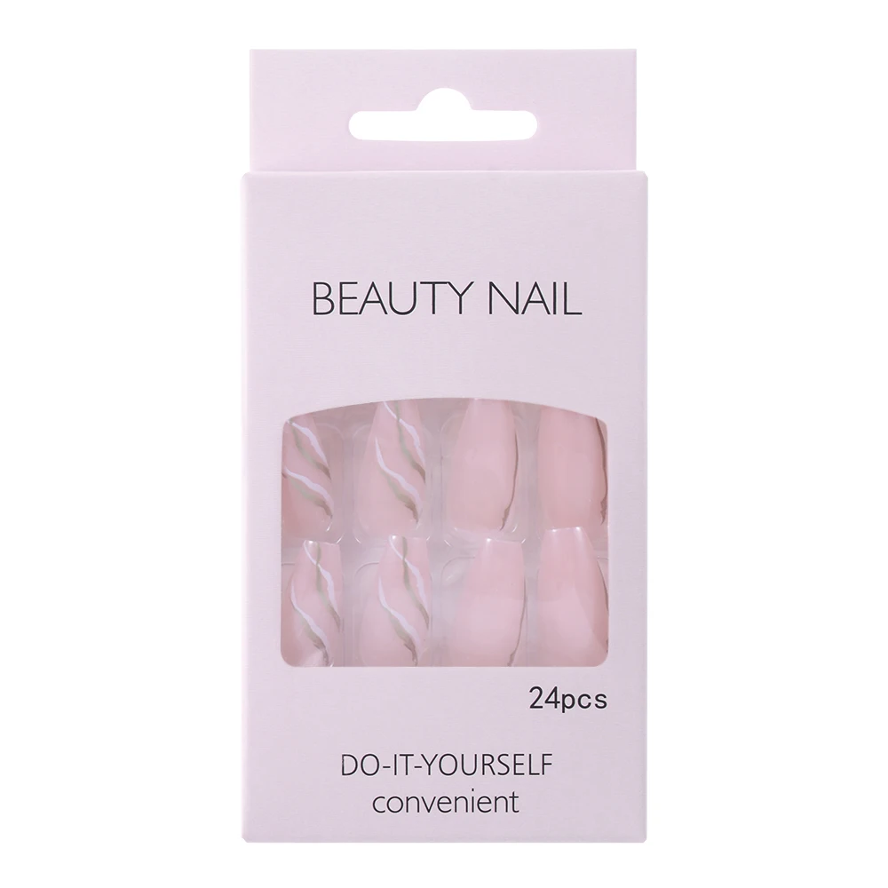 24 шт.коробка, накладные ногти с мраморной линией