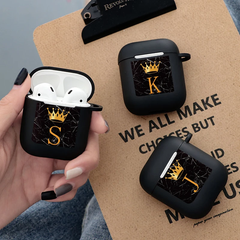 Оригинальные буквы A Z Корона золотые чехлы с алфавитом для Airpods 2 1 Мягкий силиконовый чехол для наушников Airpods Pro мраморные парные чехлы