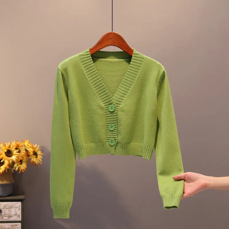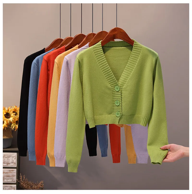 Женский осенний свитер с длинным рукавом, кардиган, винтажная трикотажная верхняя одежда в Корейском стиле с V-образным вырезом и пуговицами, 2022, повседневные женские топы
