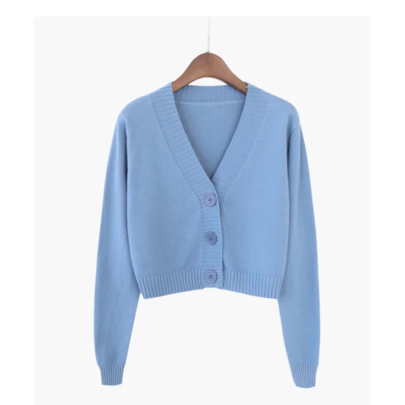 Вязаный Укороченный кардиган для женщин, корейский короткий свитер ...