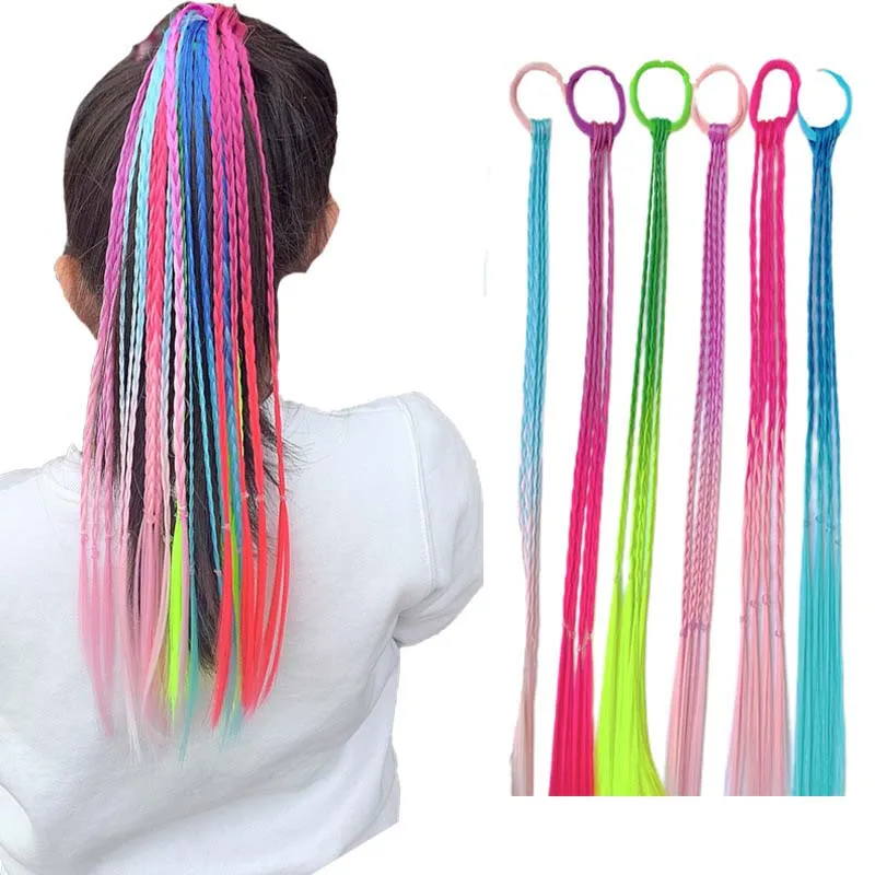 Милый детский градиентный головной убор с хвостиком, веревки для волос для маленьких девочек, новый цвет, яркий парик, косичка, эластичные кольца для волос, детский головной убор