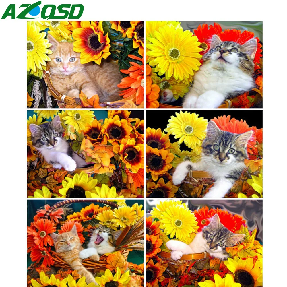 Алмазная живопись AZQSD 5D с изображением кота, квадратное рукодели...