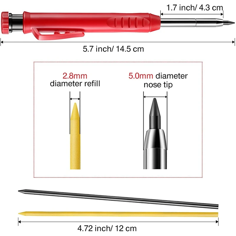 Твердый плотничный карандаш со сменными наконечниками и встроенной ...