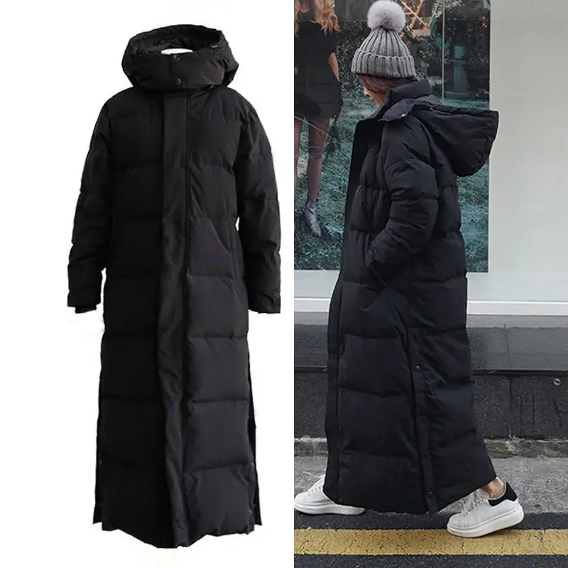 Куртка женская утепленная, длинная, черная, свободная, на осеньзиму, 2021