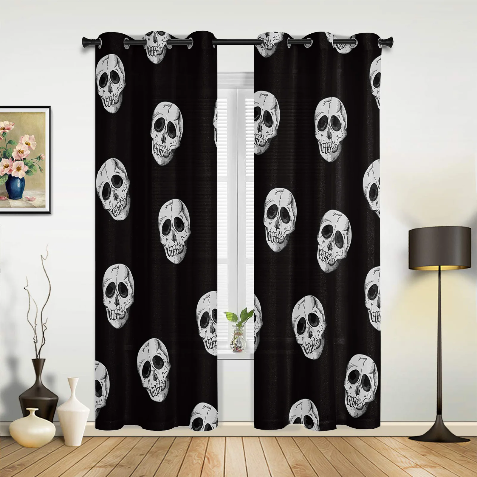 Оконные шторы с черепом на Хэллоуин для гостиной, спальни, кухни, декоративные оконные шторы, рождественские шторы