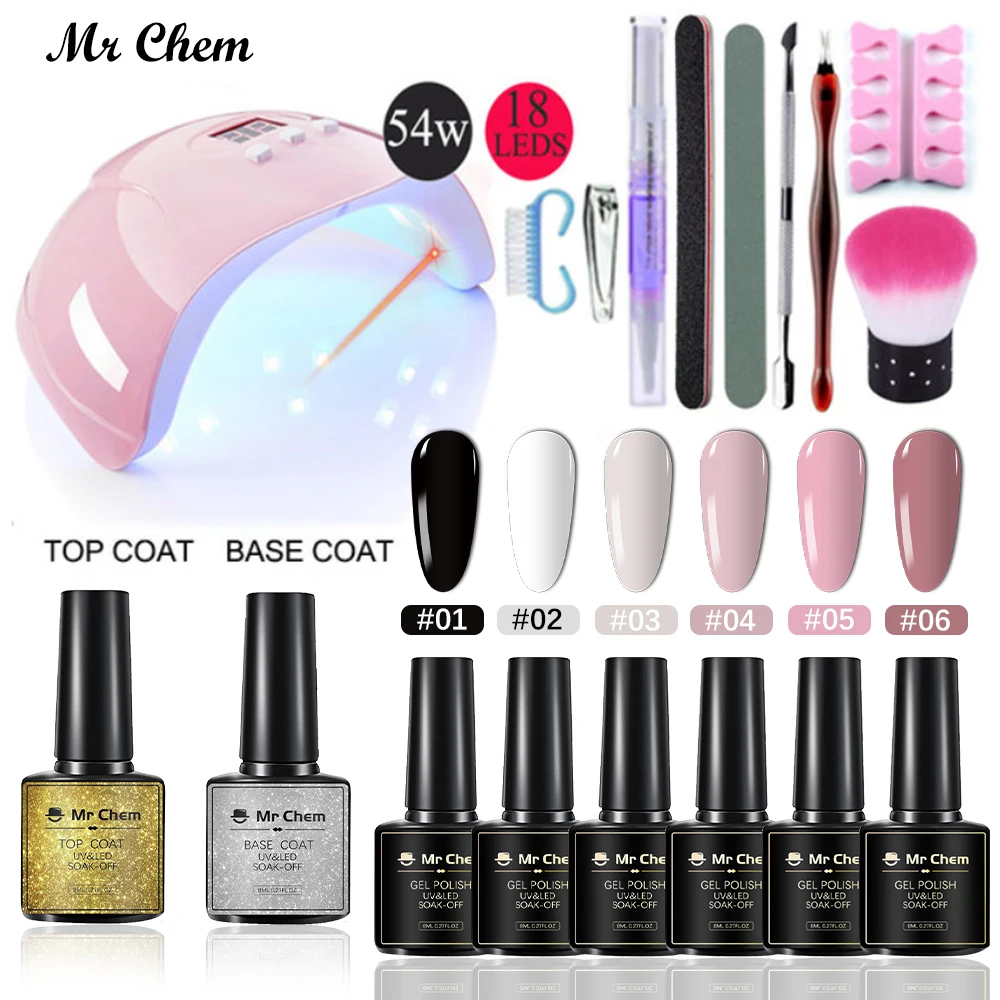 Маникюрный набор Mr Chem, 54 Вт, УФ светодиодный лампа, 181210 цветов, электрическая дрель для ногтей, инструмент художественное оформление ногтей
