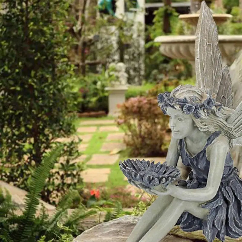 Домашняя статуя, украшения из смолы, сказочные Подсолнухи, украшение для сада, ангел, полимерные украшения, поделки, настольные украшения, сказочное украшение