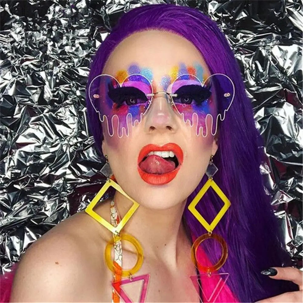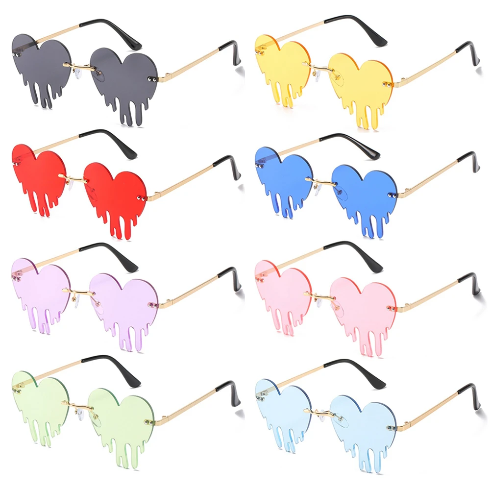 Солнцезащитные очки без оправы в форме слезы и сердца, летние солнцезащитные очки UV400 в стиле стимпанк, забавные очки для женщин, для Хэллоуина, праздника, вечеринки, улицы