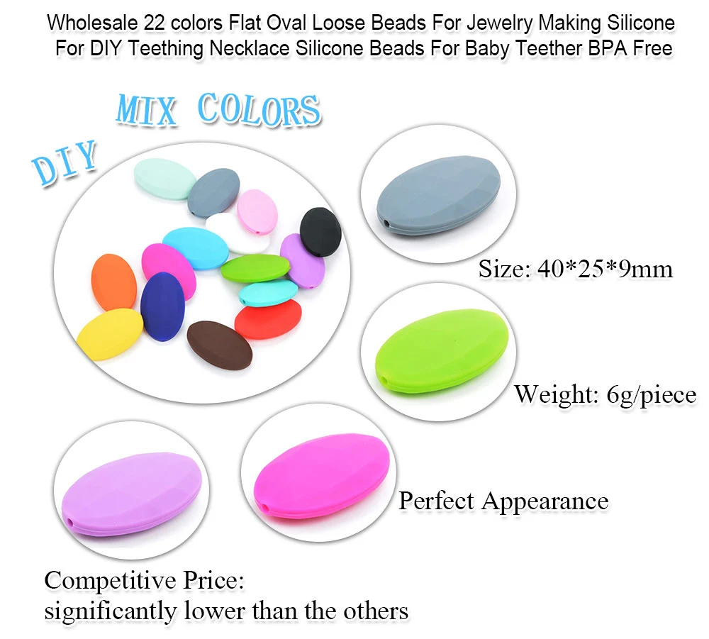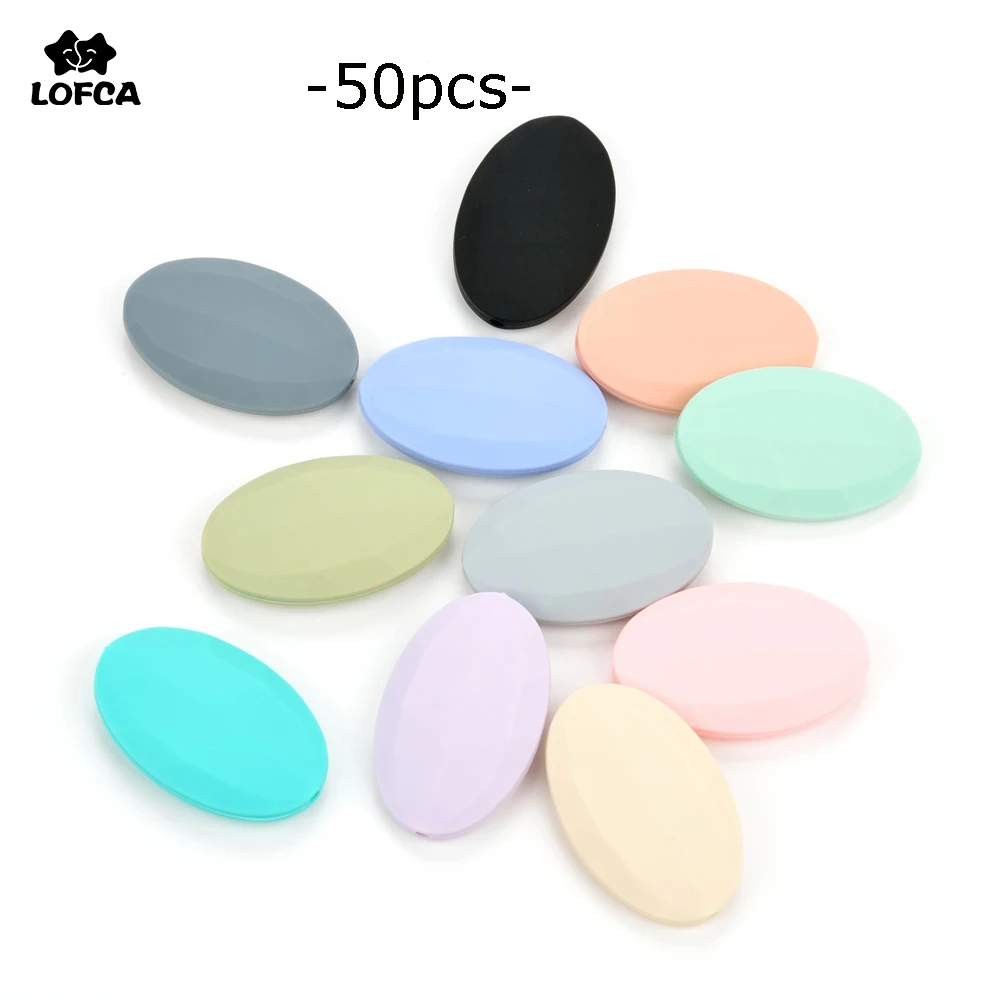 Плоские Овальные силиконовые бусины LOFCA, 50 шт., не содержит Бисфенол А, бусины для зубов в пищевой форме, аксессуары для игрушек-прорезывателей для детей