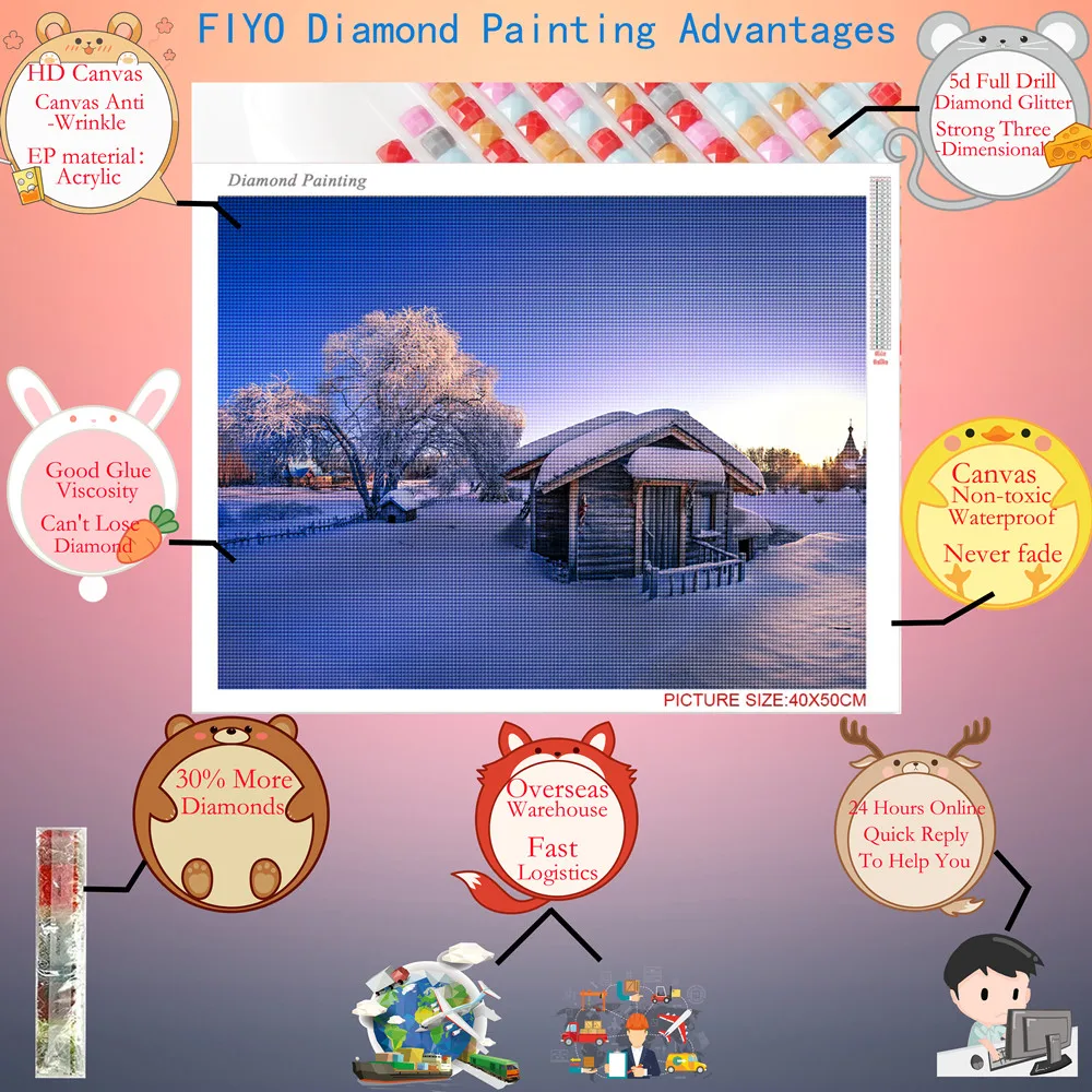 Алмазная 5D картина сделай сам, картина с зимним домом, мозаика, по...