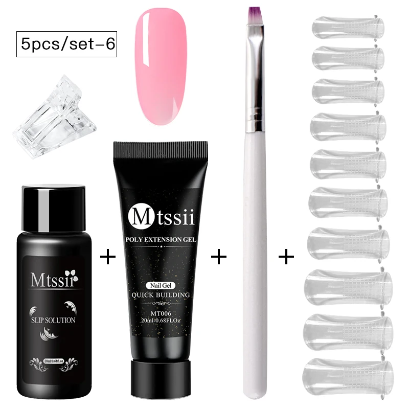 Mtssii 5 шт. набор полиудлинительных гелей для дизайна ногтей Французский прозрачный дизайн ногтей камуфляжная форма для кончиков ногтей кристалл УФ-гель Кисть для ногтей