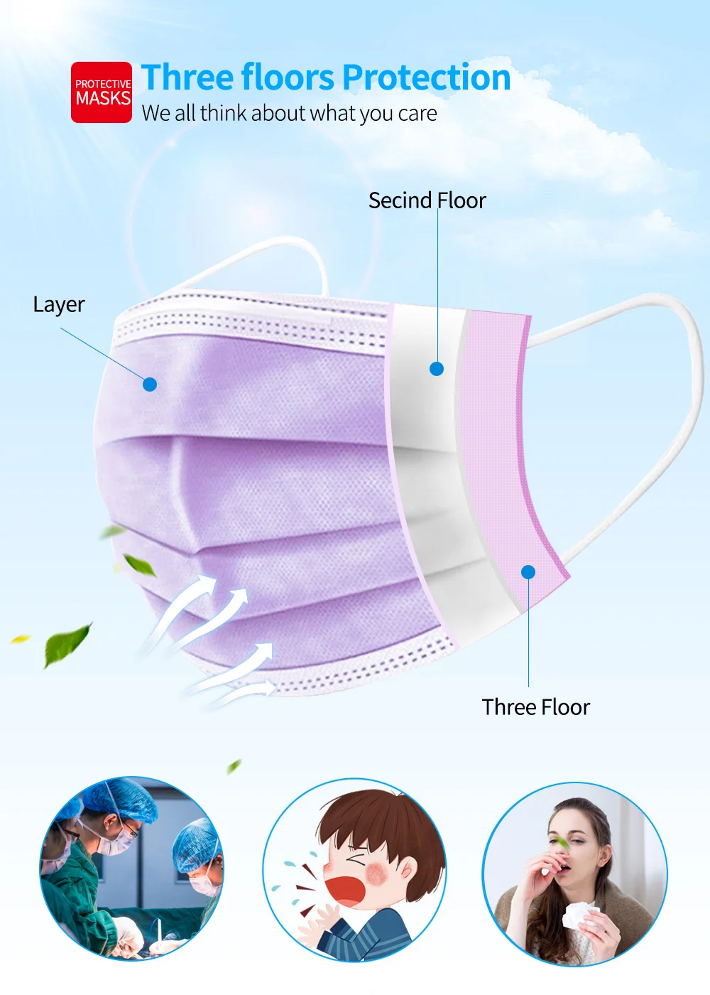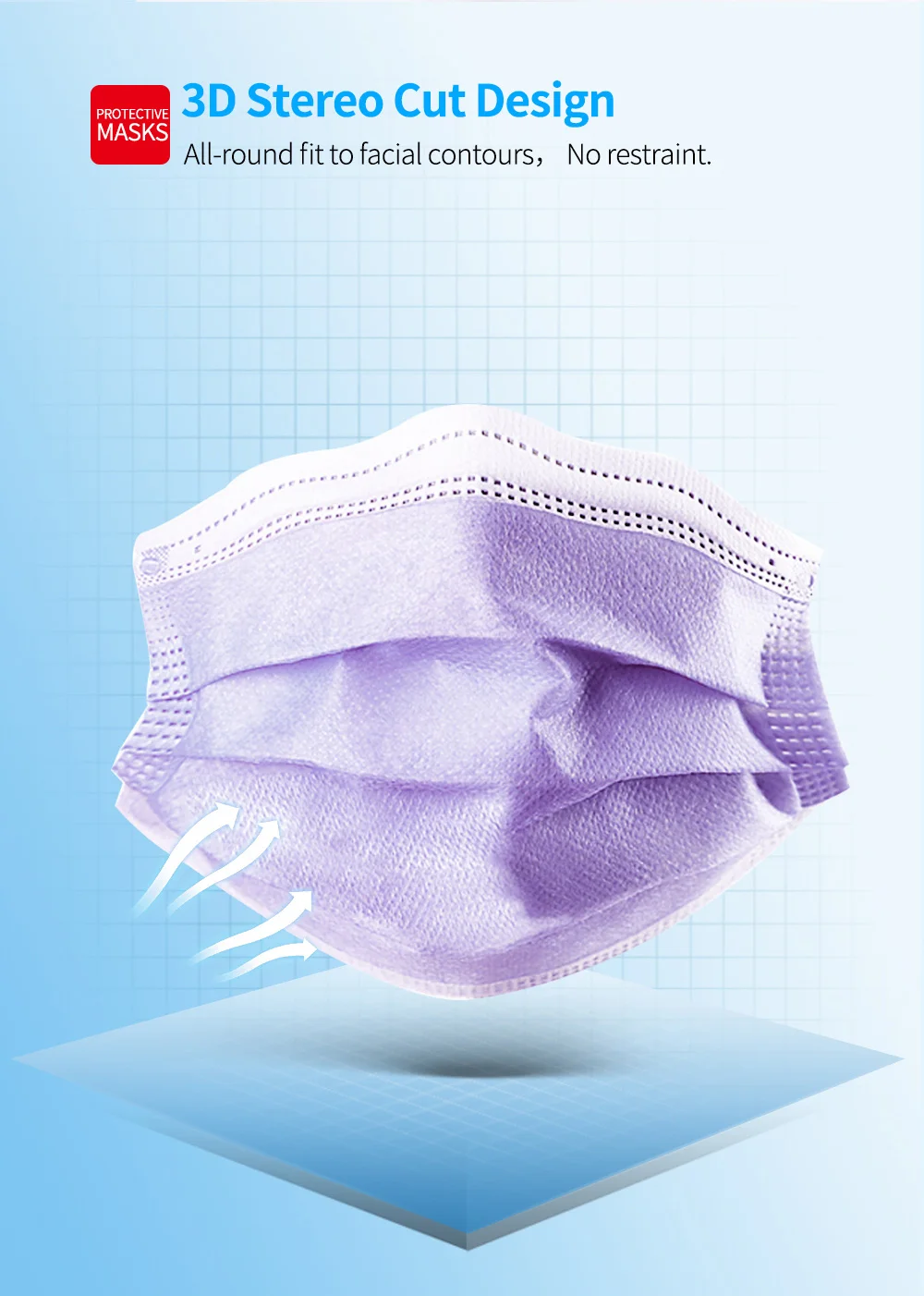 Маски для взрослых, одноразовая цветная трехслойная маска с фильтром, нетканые пыленепроницаемые Тканевые маски для лица, маски для лица