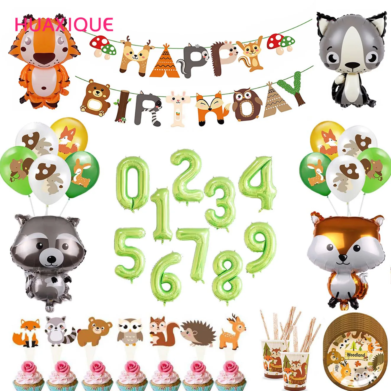 Животные джунгли воздушный шар дикий один номер воздушный шар лес посуда в виде животных лесной День Рождения украшения для вечеринки в стиле сафари поставки