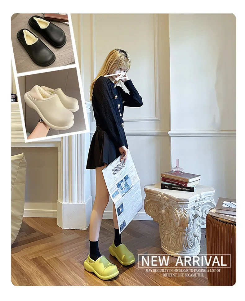 Водонепроницаемая зимняя теплая обувь; Женские и мужские домашние тапочки; Мягкие домашние тапочки EVA на платформе 6 см; Женская и мужская обувь для кухни