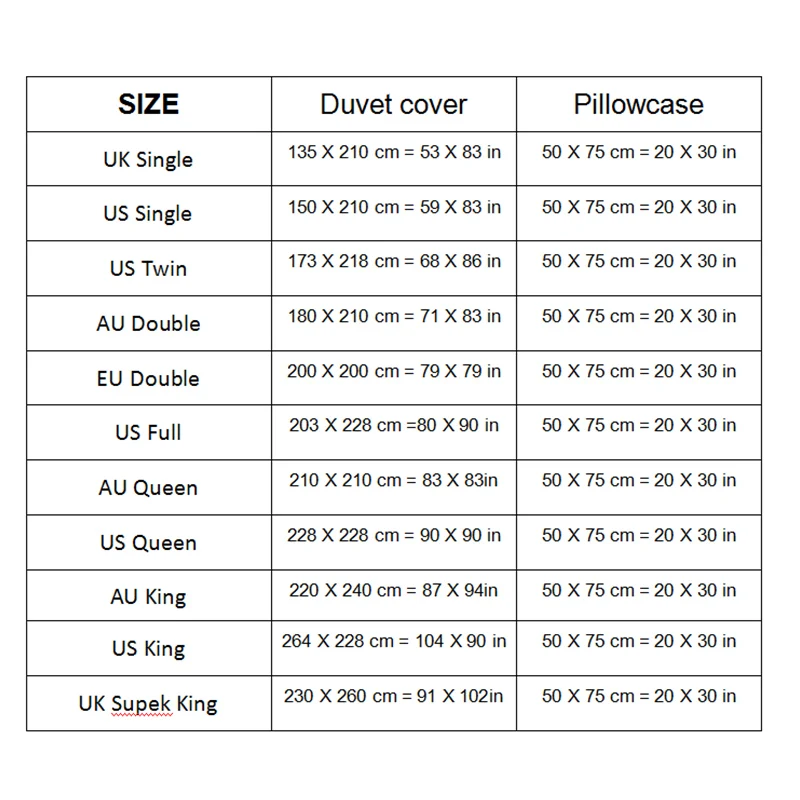 Пододеяльник (1 шт.):203X228 см = 80X90 дюймов