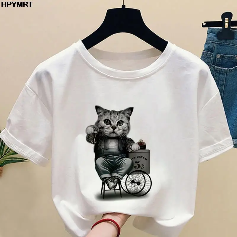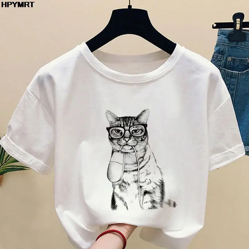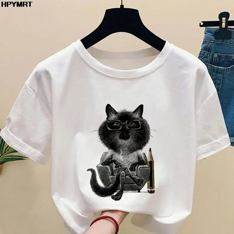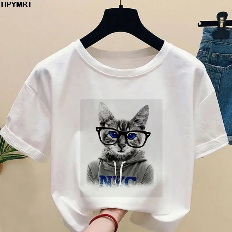 Женская футболка с принтом в виде боксерского кота, летняя Милая модная одежда в стиле 90-х, топы, женская футболка, женская футболка с коротким рукавом