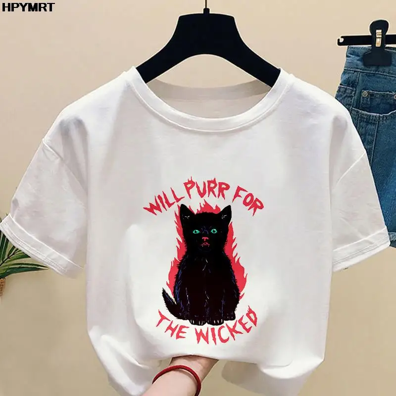 Женская футболка Harajuku, белая футболка с принтом в виде темного ...