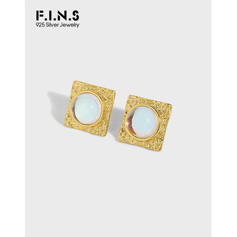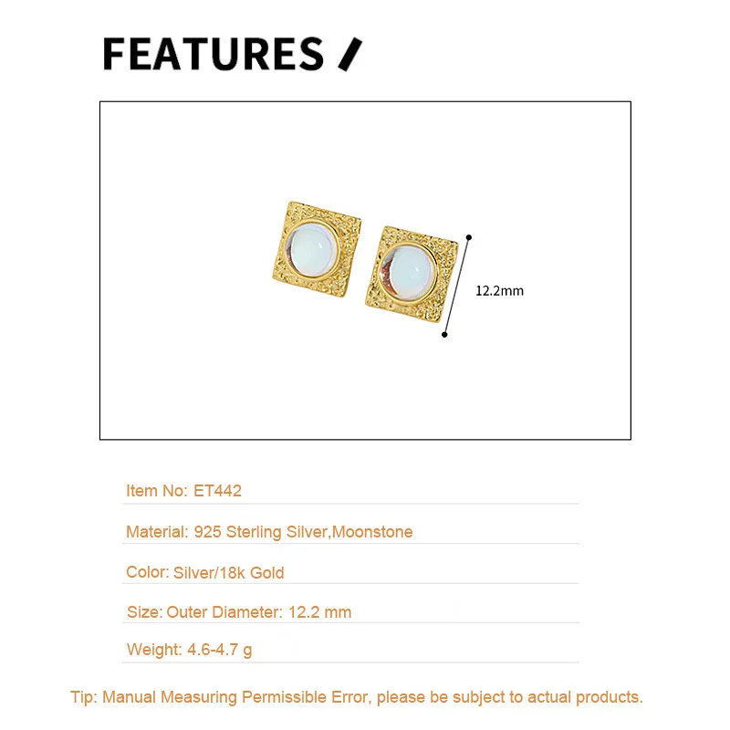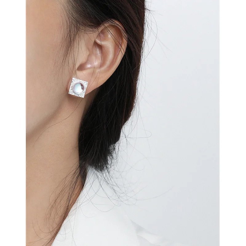 Серьги-гвоздики из серебра 925 пробы, с круглым лунным камнем
