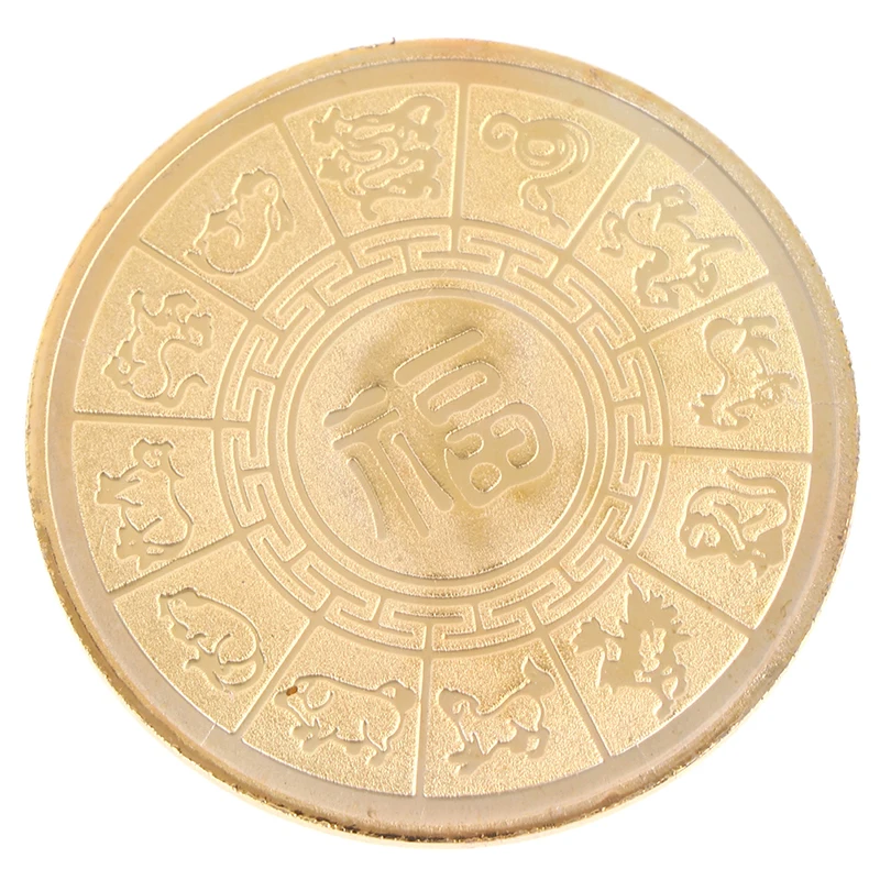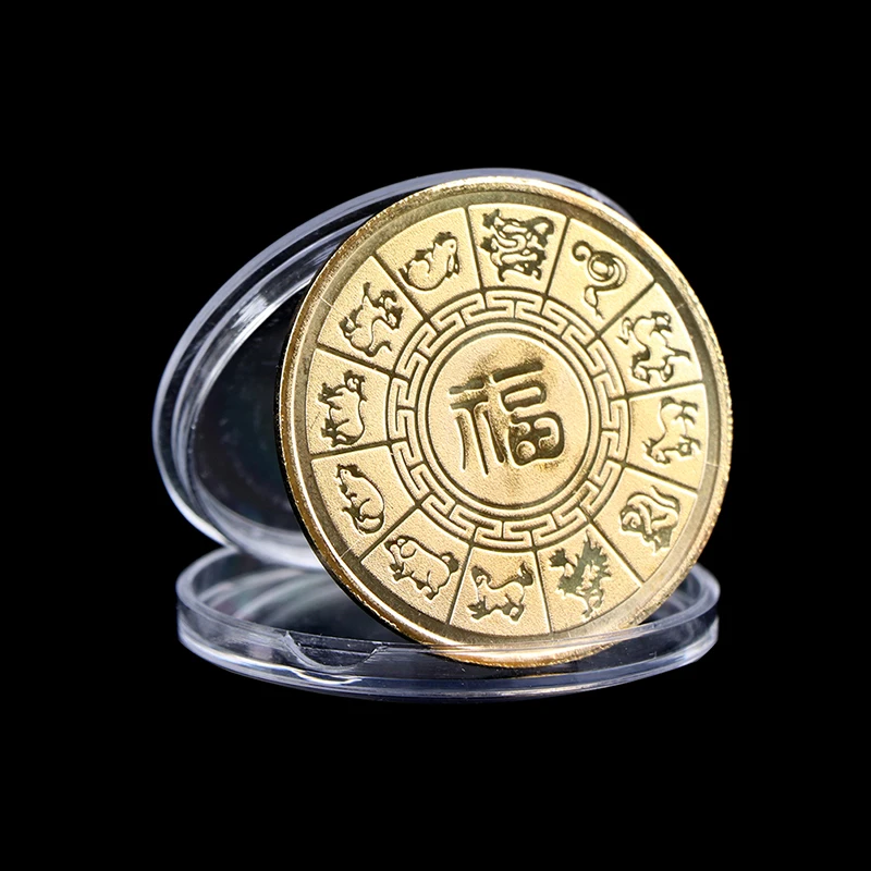 Золотая монета 2022 на новый год, памятная монета с изображением 12 знаков зодиака и тигра