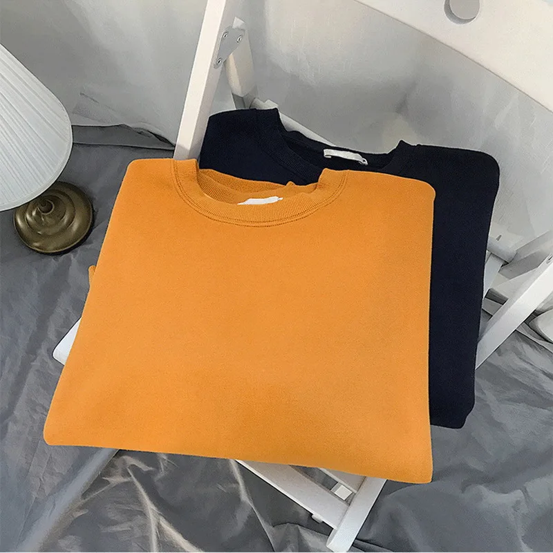Толстый свитшот для мужчин и женщин, модный однотонный пуловер в Ко...