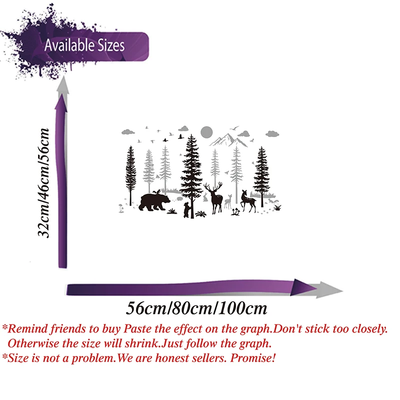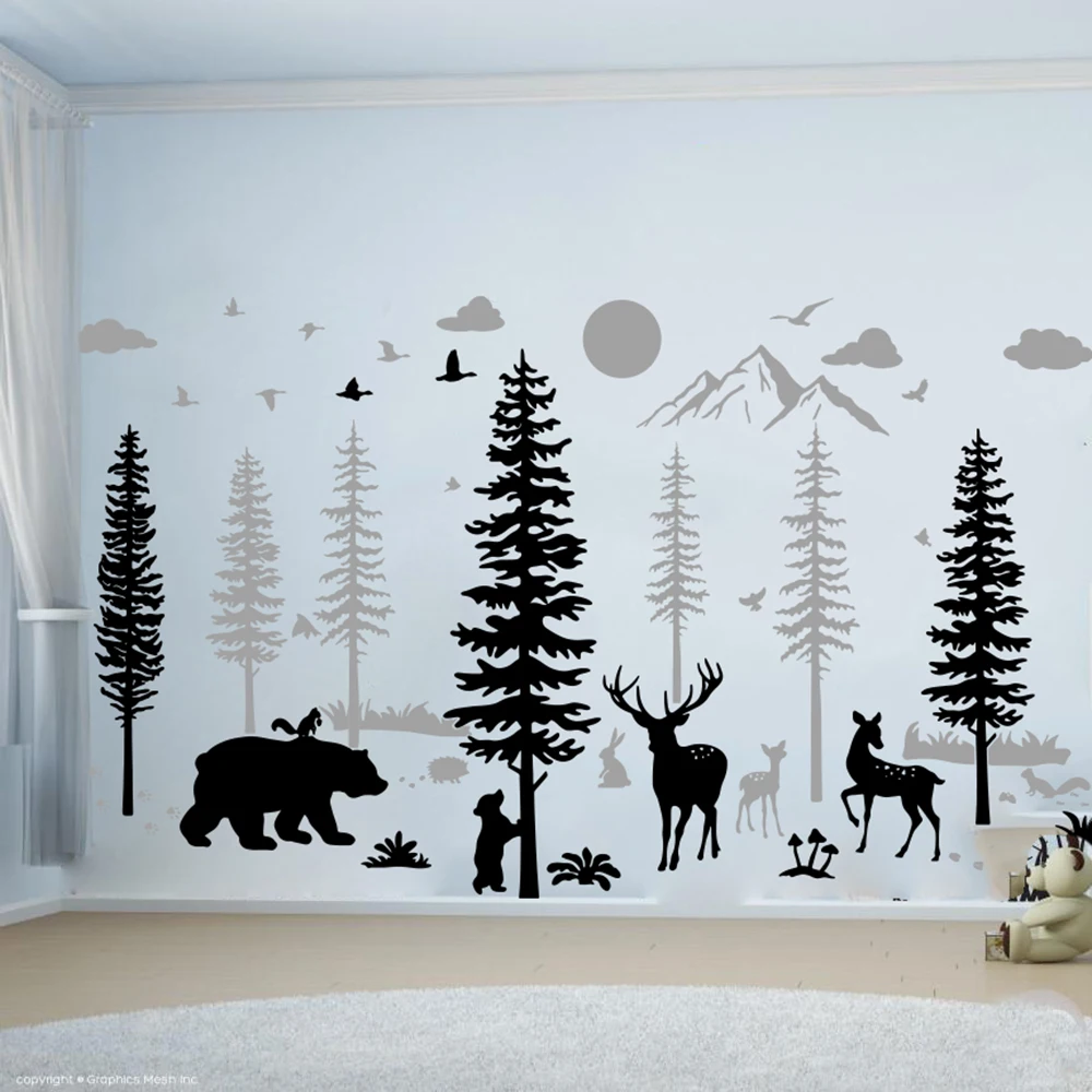 Большая лесная сосна медведь Гора Настенная Наклейка Спальня олень Джунгли Лес зоопарк Птица Животное солнце природа Настенная Наклейка