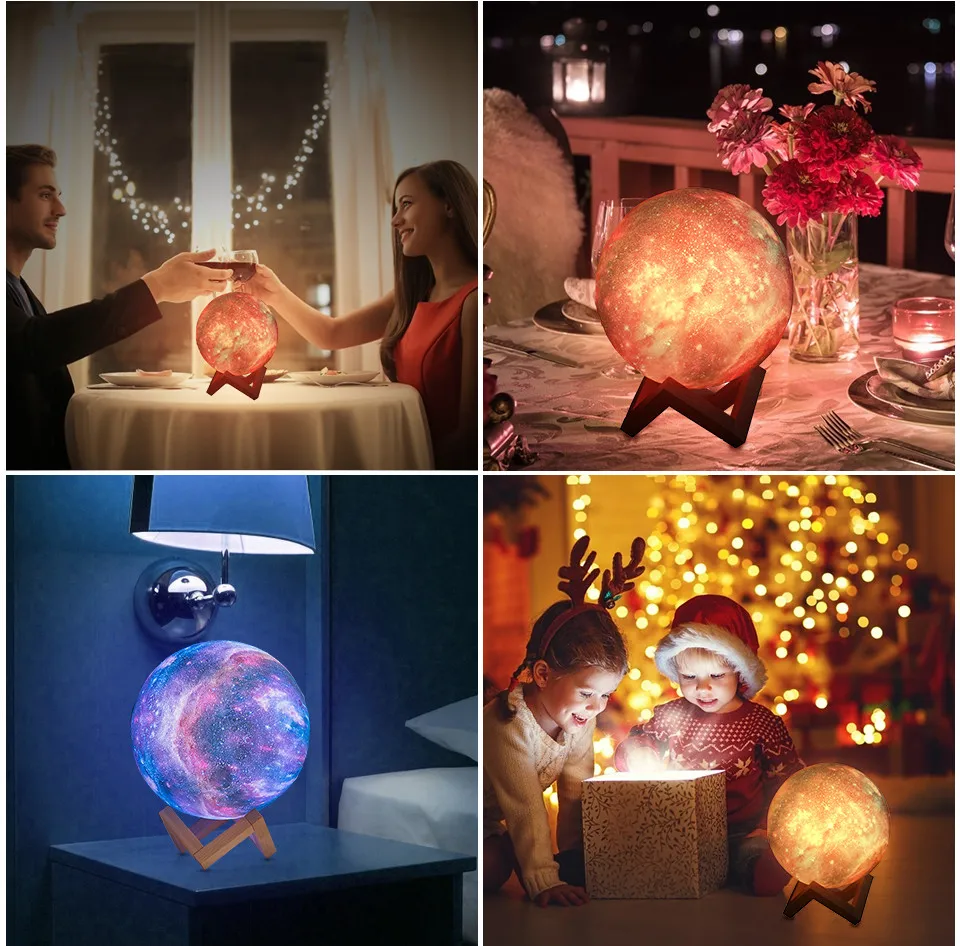 Звездная Лунная лампа, 3D печать, Галактический ночник для детей, атмосфера, 16 цветов, изменение цвета, сенсорный пульт дистанционного управления, галактика в качестве подарка