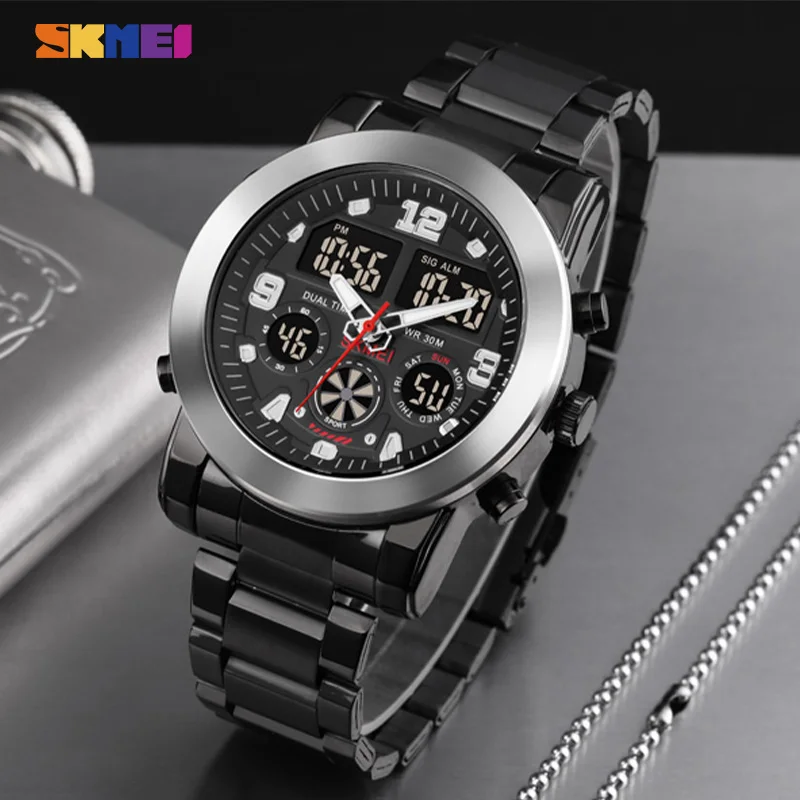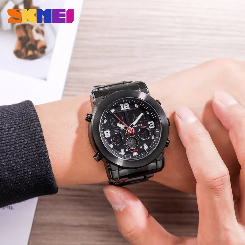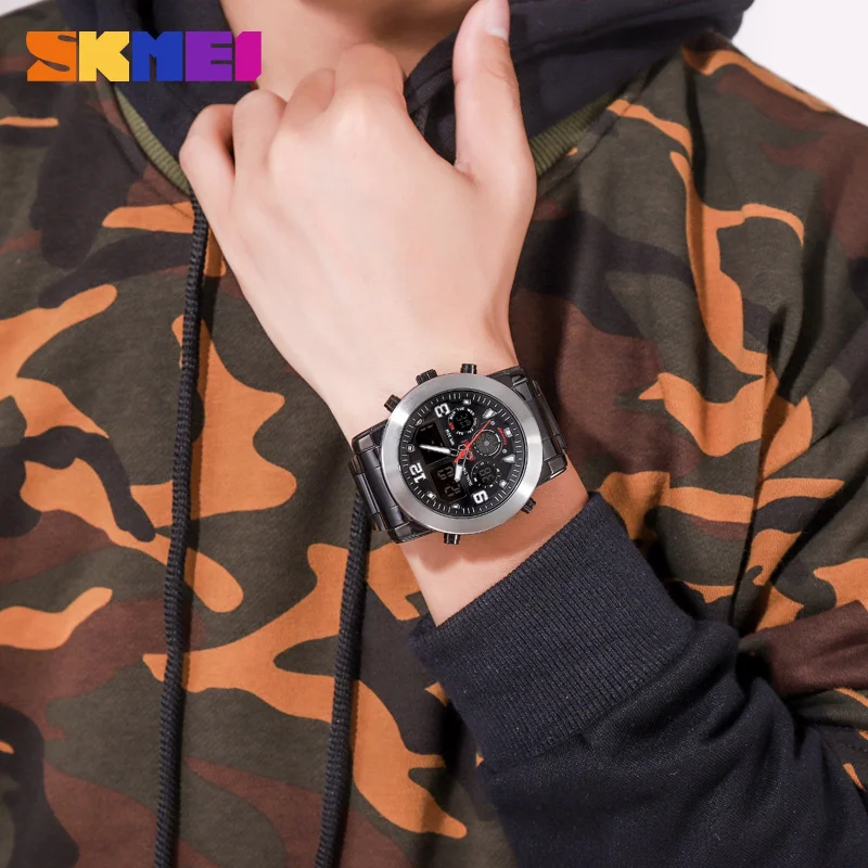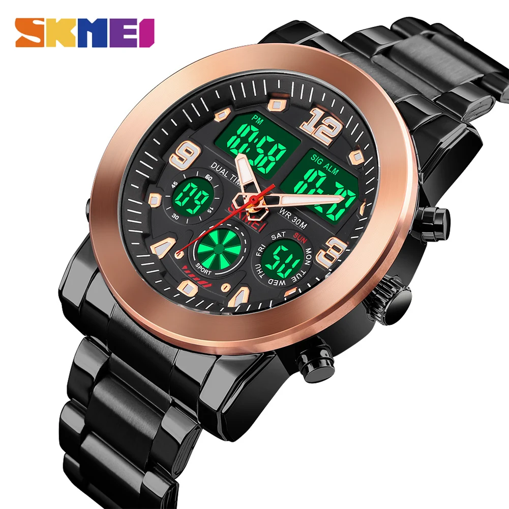 SKMEI 3 Time модные светодиодные мужские часы хронограф Обратный отсчет цифровые наручные часы повседневные мужские часы с ремешком из нержавеющей стали reloj 1642