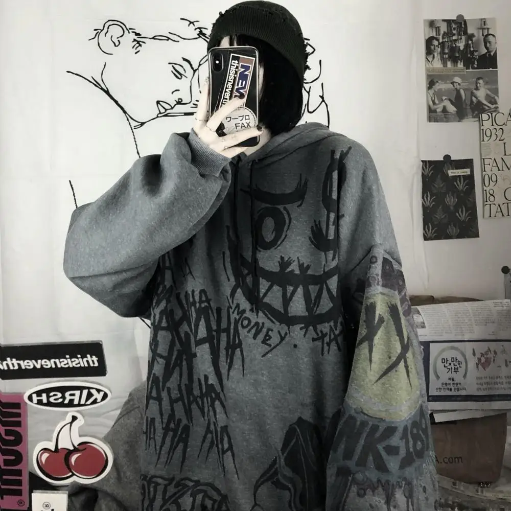 Женская толстовка с капюшоном HOUZHOU, в готическом стиле, с мультя...