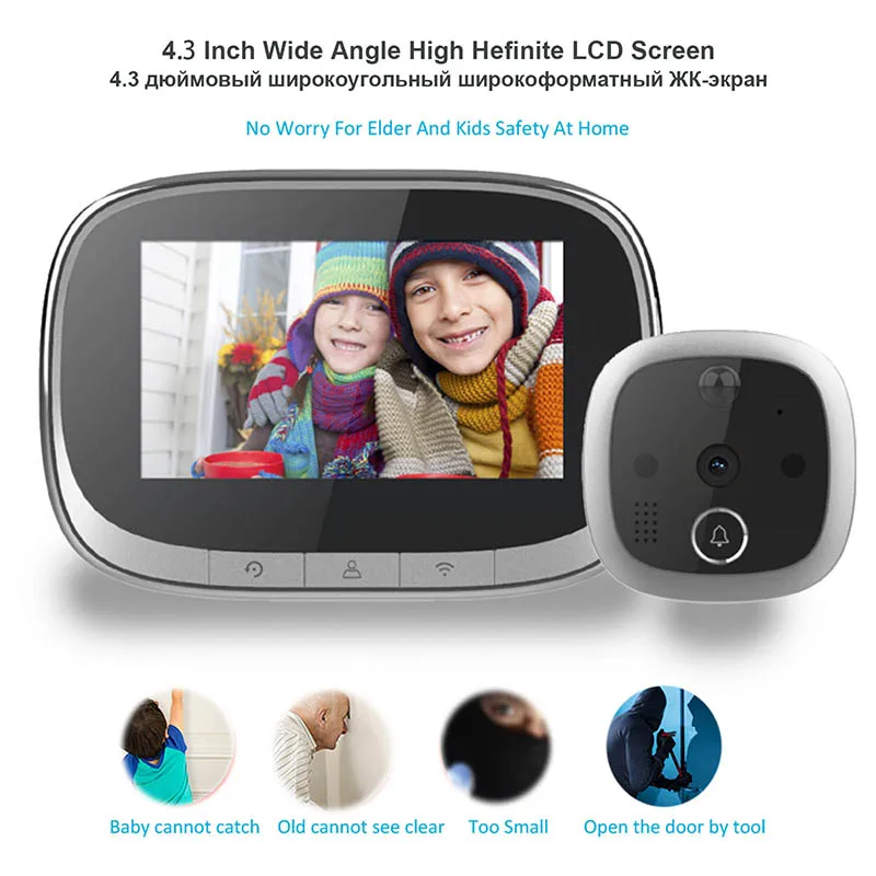 Дверной видеоглазок с Wi-Fi и ЖК-дисплеем 4,3 дюйма
