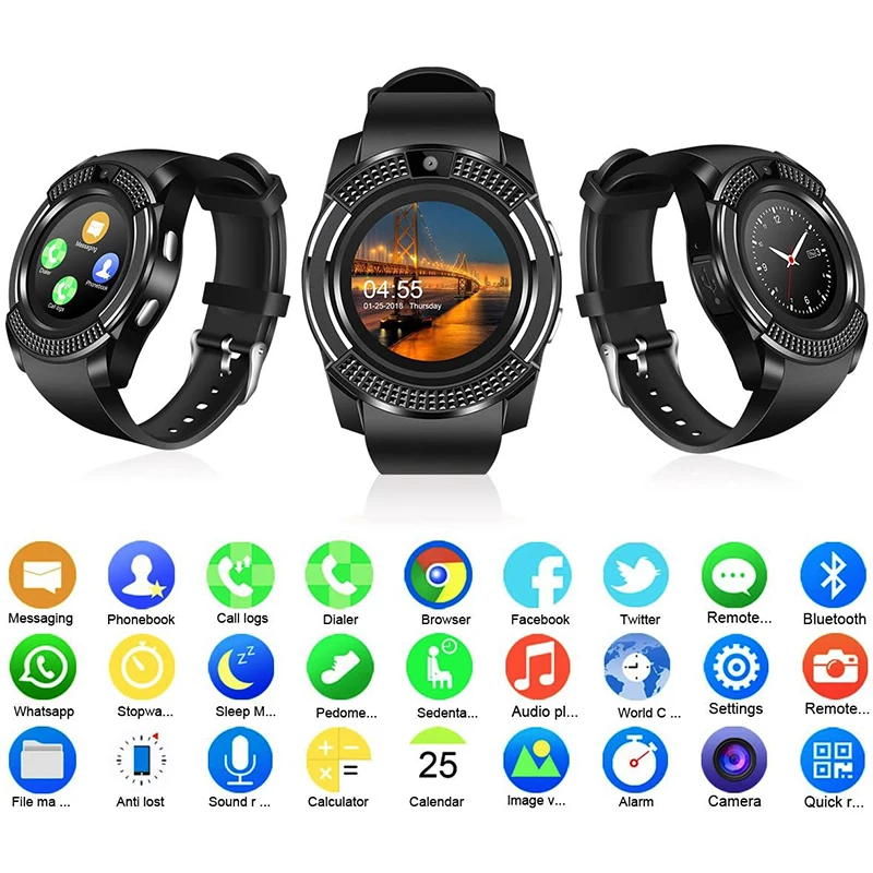 Спортивные водонепроницаемые Смарт-часы V8 с sim-картой, подходят для мужчин и женщин, наручные часы с шагомером, управление камерой, Bluetooth, Whatsapp, умные часы